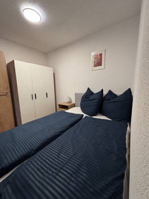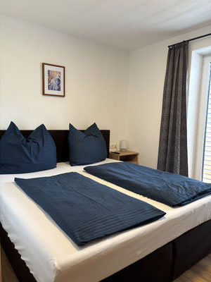 Alle Zimmer sind mit Boxspringbetten und einem Kleiderschrank ausgestattet.